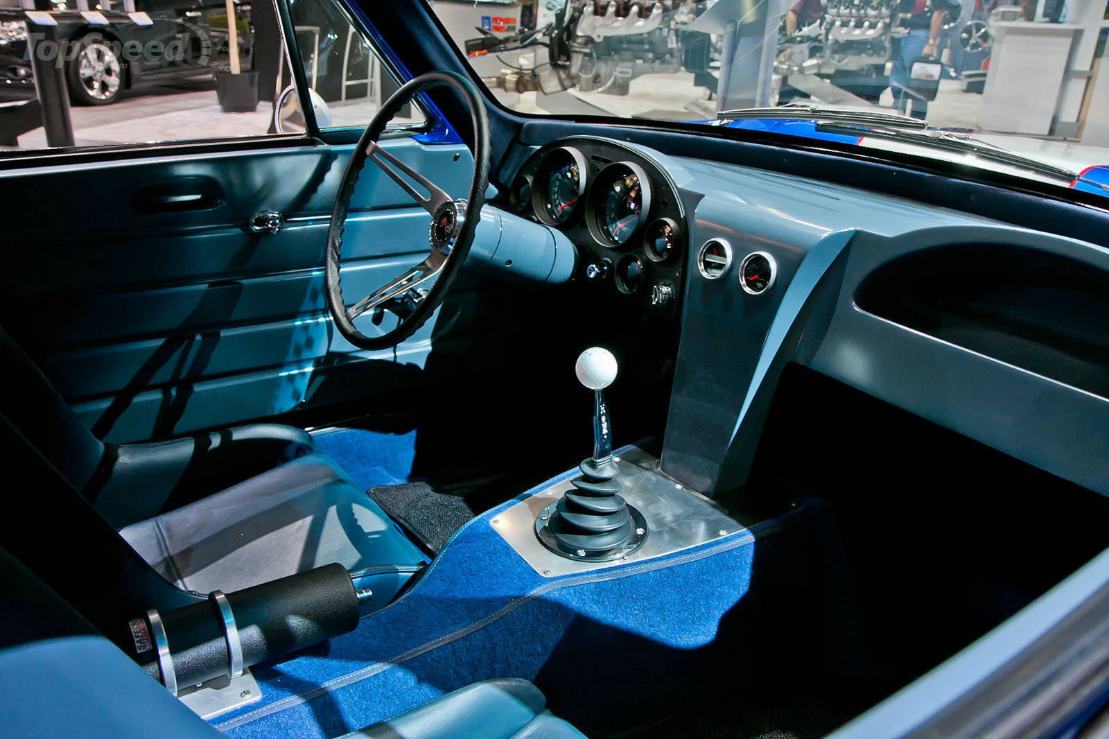 The car is again painted in the famous Admiral Blue color with white stripes as suitable for racing cars. According to what 1963 Chevrolet says, the company has established thorough cooperation with the California Air Resources Board (CARB) for further use of the E-ROD LSA system in other vehicles such as the pre-OBD-II vehicles r the Superformance Grand Sport. This engine system will be accessible for customers in the beginning of 2011.