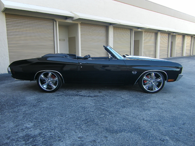 Let us present you our new discovery! The one and only 1970 Chevrolet Chevelle Convertible Restomod Triple Black! As we were informed, the beauty has a completely restored engine the Big Block 396, along with a 4 speed manual transmission. The beauty has been dressed up with tilt steering column, flywheel, 4 wheels big brake disc (12″ rear and 13″ front), air conditioning, pressure plate, defrost, heat, 12 bolt rear end possi traction, linkage and many more.