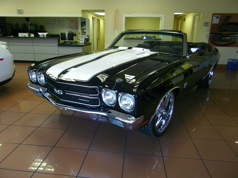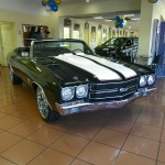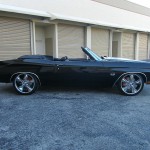 Let us present you our new discovery! The one and only 1970 Chevrolet Chevelle Convertible Restomod Triple Black!  As we were informed, the beauty has a completely restored engine the Big Block 396, along with a 4 speed manual transmission. The beauty has been dressed up with tilt steering column, flywheel, 4 wheels big brake disc (12″ rear and 13″ front), air conditioning, pressure plate, defrost, heat, 12 bolt rear end possi traction, linkage and many more.