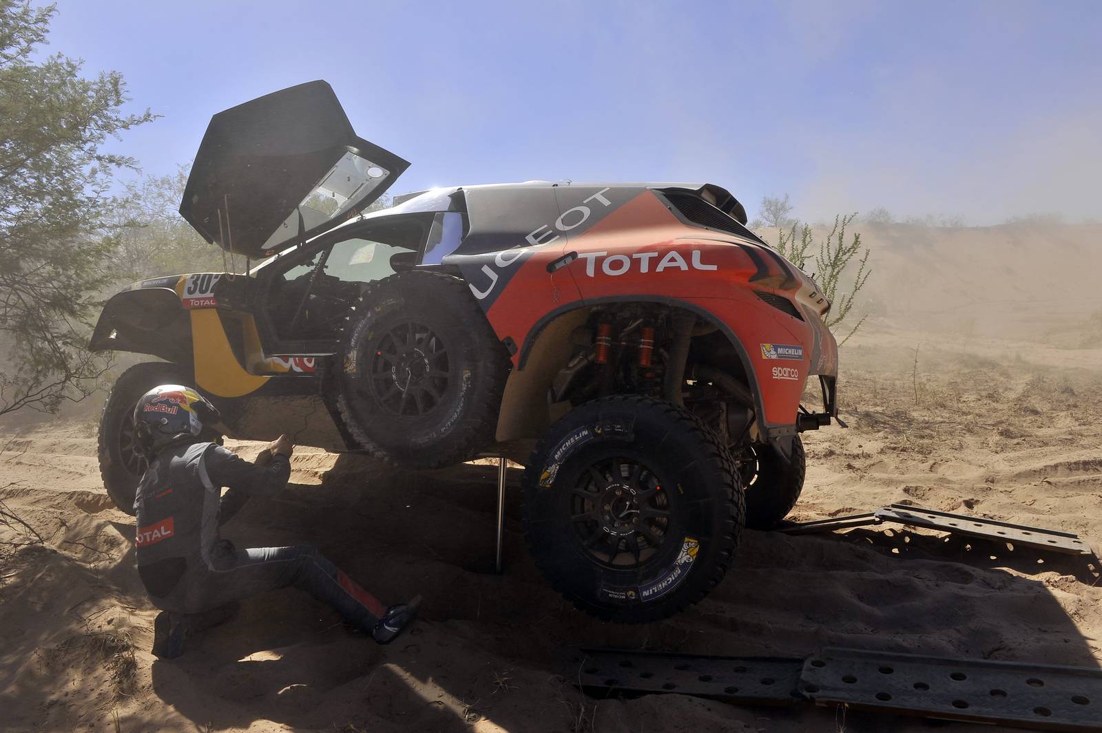 The fantastic trio of PEUGEOT – Loeb, Peterhansel and Sainz proved once again why they are the main favorites for the title! Loeb had some struggle with the dunes again, while Peterhansel lost his lead with the 2008 DKR Peugeot to Carlos Sainz! Take a look at the gallery that enjoys the best pictures from the 2016 Dakar Rally Stage 9!