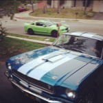 While driving this car we came up with an idea. We decided to go to a good friend of ours who owns a `66 Shelby GT350 and drive that a little bit so that we can truly feel the difference between the old and the new generations. Even though Alex`s `66 Shelby was not automatic and was painted blue and white we still got into the car excited to see what the drive is going to be like.