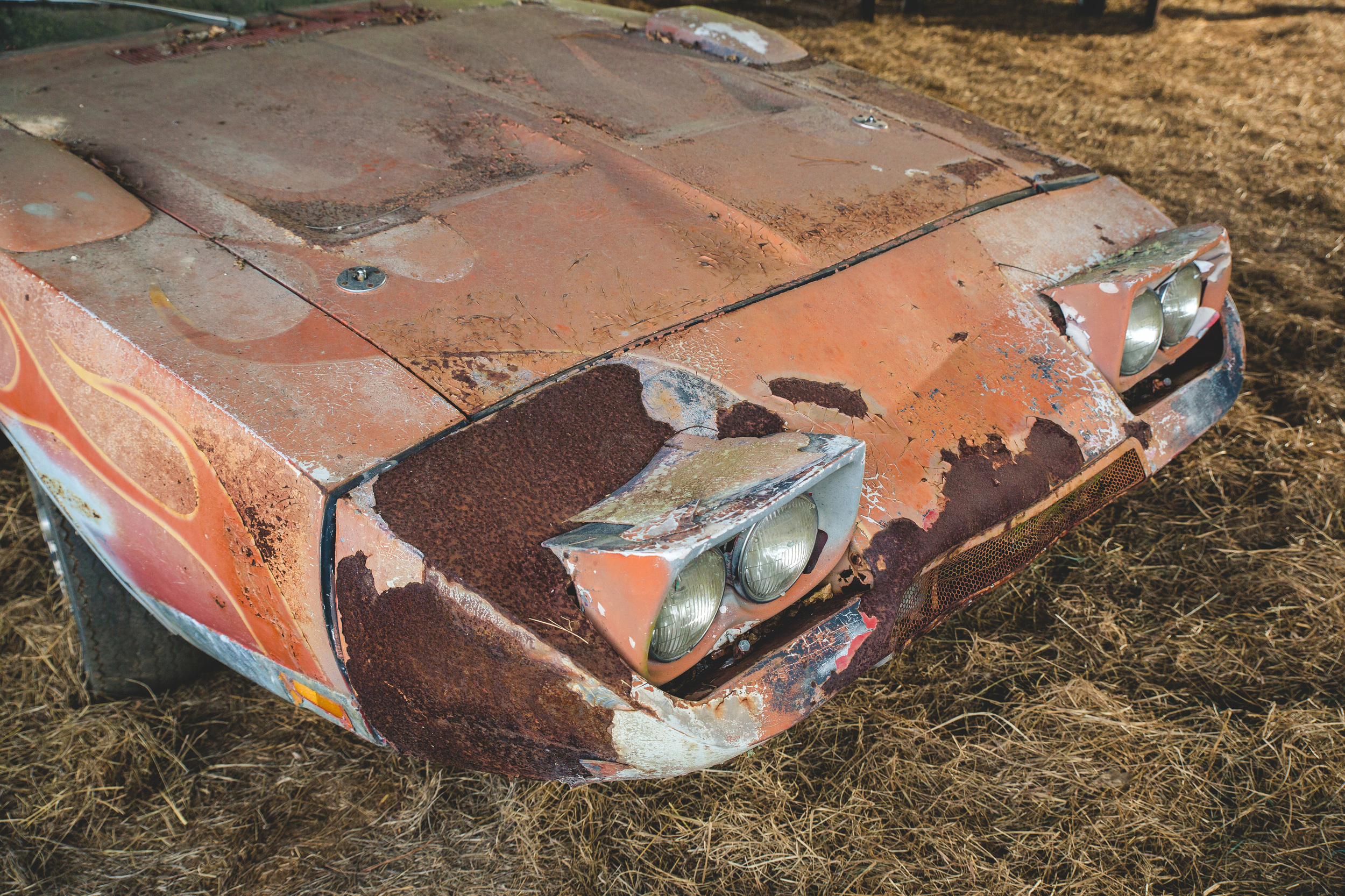 The first owner of this vehicle was the town judge, and it was bought for his wife. In 1974, the second owner who was just 18 years old, bought it for $1.800 to drive it to Panama City, Florida! He had flames painted on the front and the scallops trim!