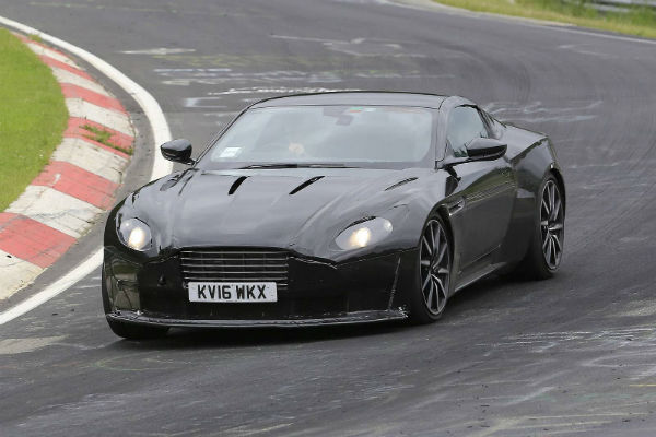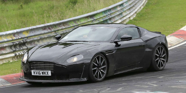 In the gallery below, you can see a prototype caught testing which is obviously the DB11`s younger brother! It is a shorter model than the DB11 and features modified headlights, round roof line, a new grill and a new front spoiler as well! When it comes to the interior, the new Aston Martin Vantage 2017 is expected to have many of the styling characteristics as the DB11!