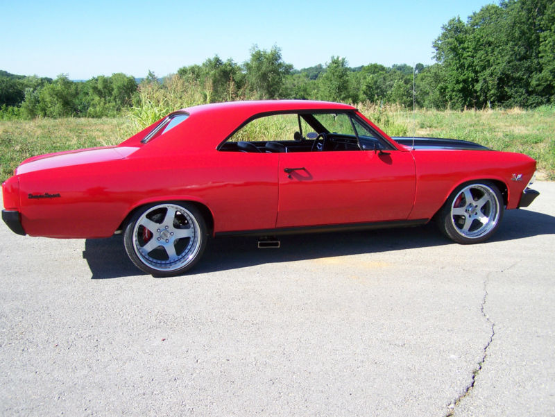 The insides are dressed with new carpet and brand new 67 SS upholstery seats and the outside has black billet door knobs and polished billet hinges from Eddie Motorsports. Unique 1966 Chevrolet Chevelle!