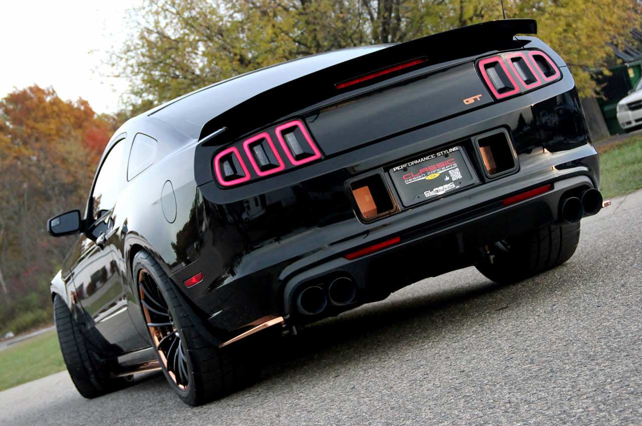 Here we are, showing you some fine images of the Bad Penny Mustang, designed by Classic Design Concepts. This auto shall make it first appearance on the SEMA Show 2013. This car has some real mean looks due to its black color and copper accents as well as 20-inch Forgiato wheels.