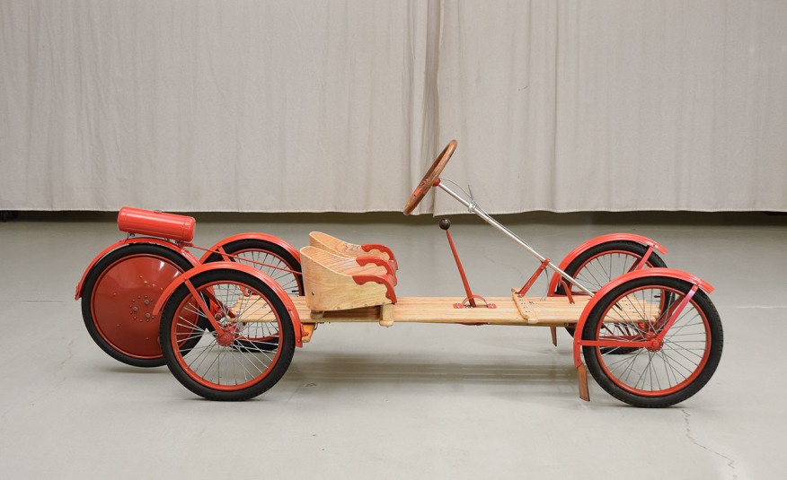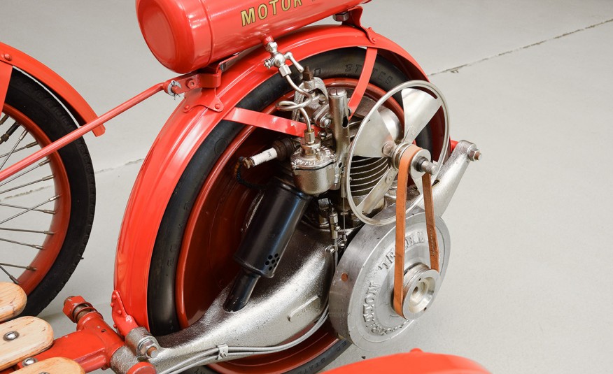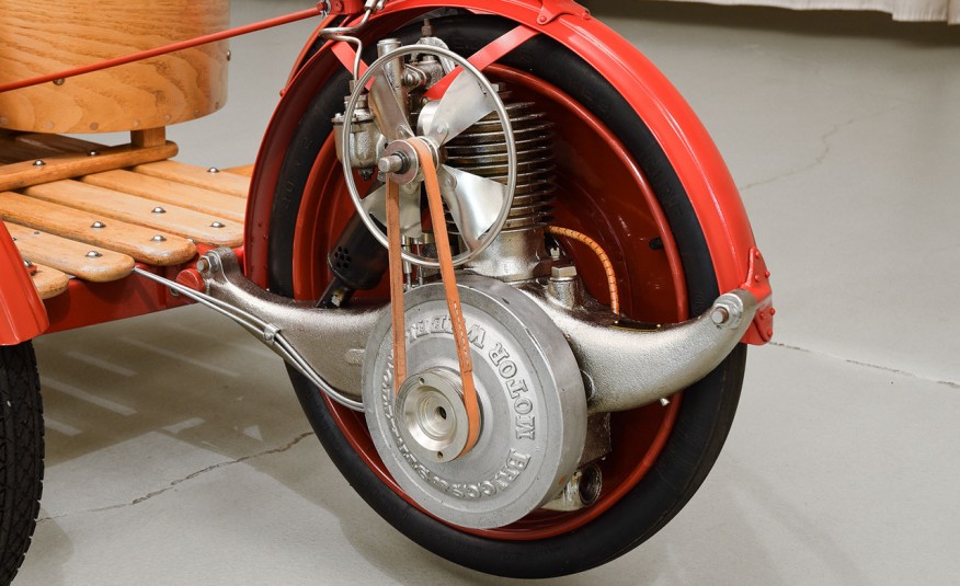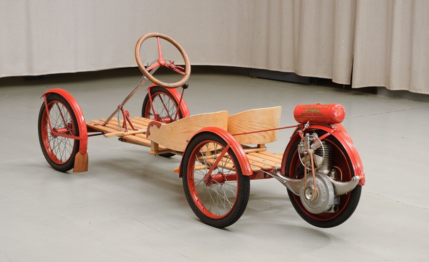 With a direct-drive motor wheel, this gas powered pristine has survived numerous events and races that left mark to the rich automotive industry! The Briggs & Stratton engine that is mounted right next to the extra wheel, can deliver only 2 HP! Weird, right? Well, this thing predates even our grandfathers` era and it can be yours now!