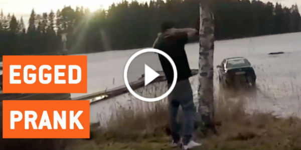 When the car pranks starts, this fellow chap most immediately rushes out of his vehicle to cease the egging. He starts running towards his dreadful, giggling friends but unfortunately he forgot to put his car in park mode! The car slowly starts to move downhill towards a lake while gaining more speed in doing so! This guy never had a chance to save his car despite his best efforts.