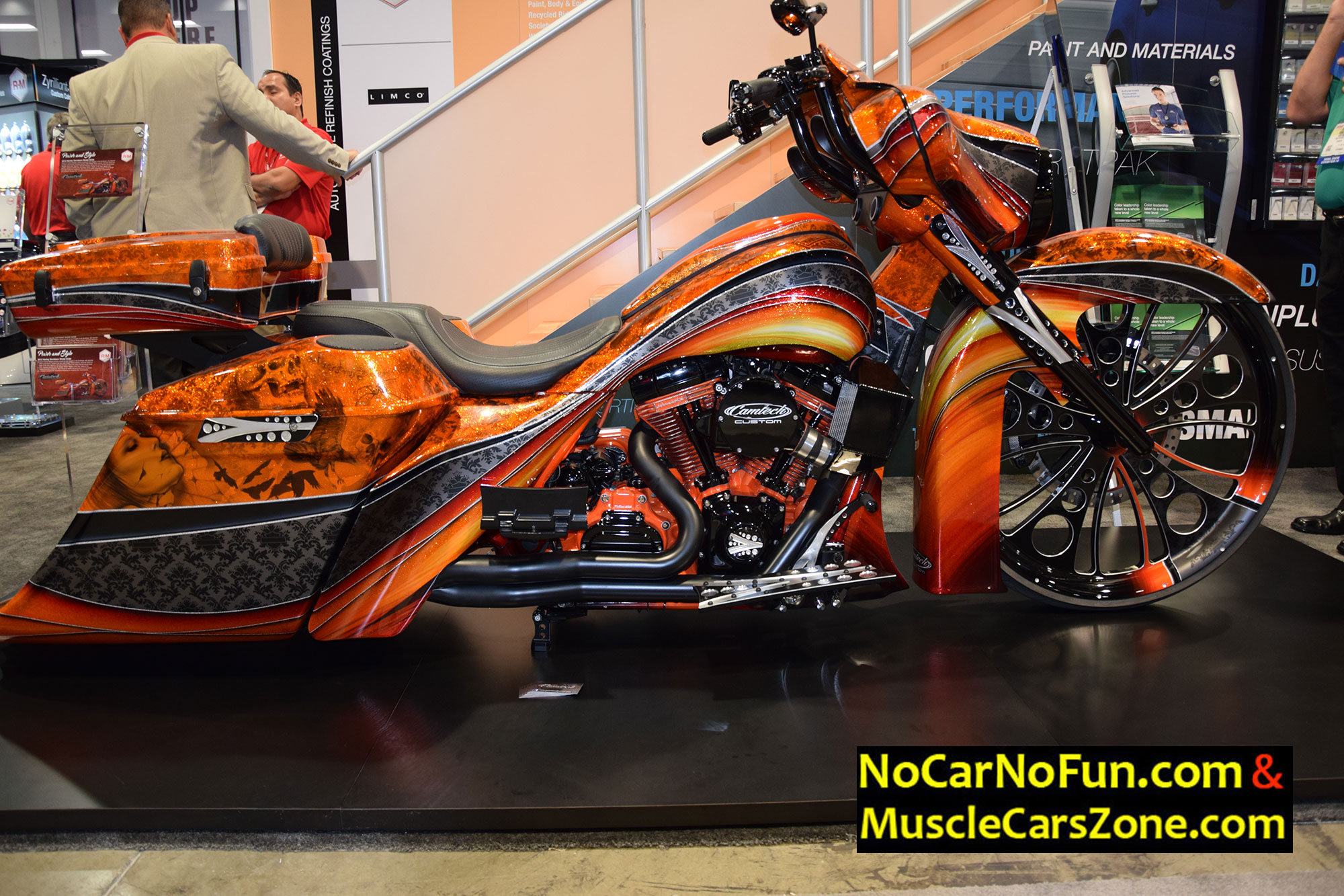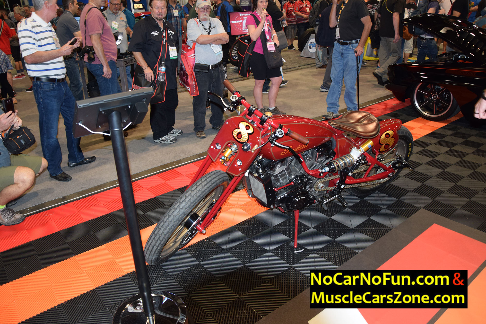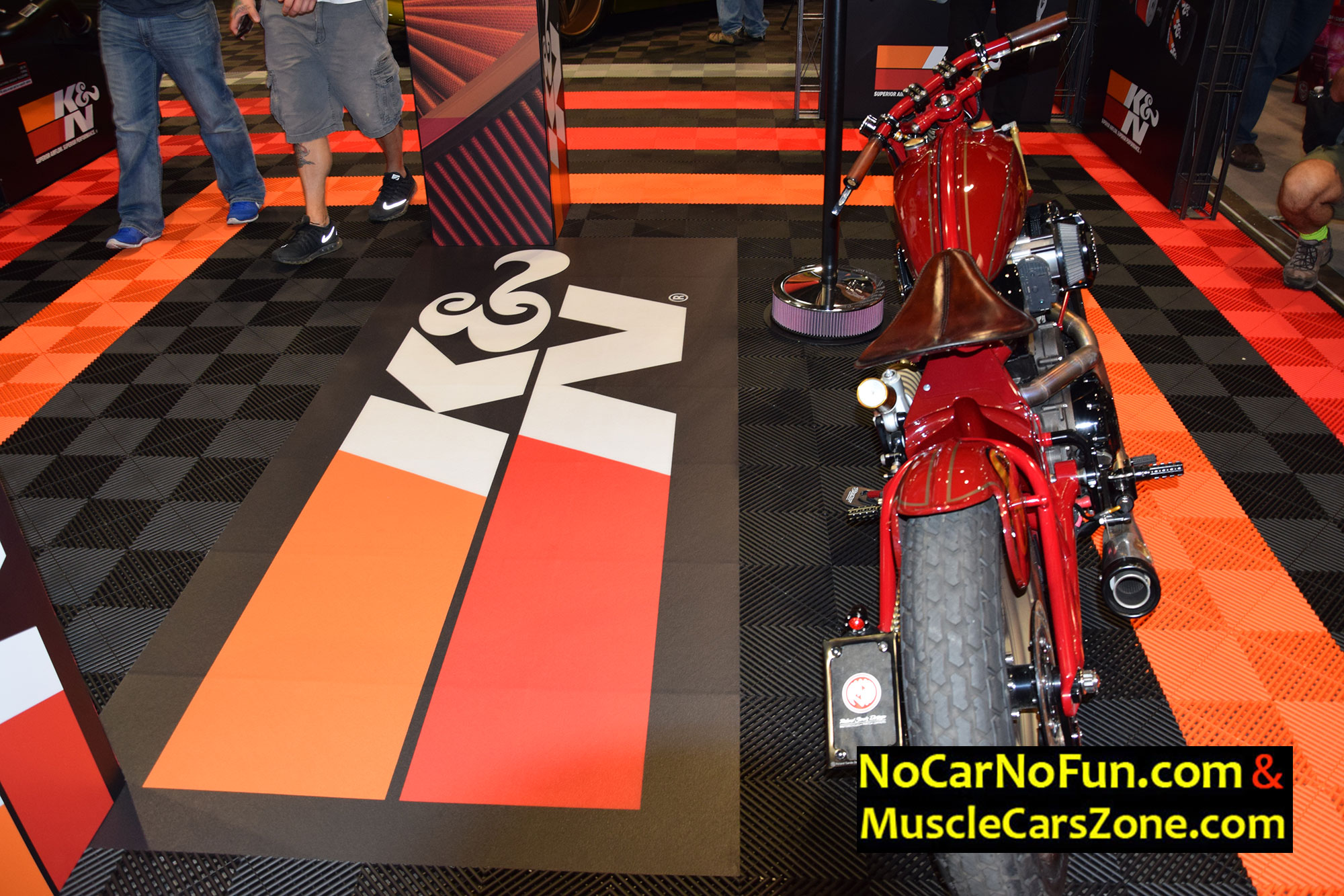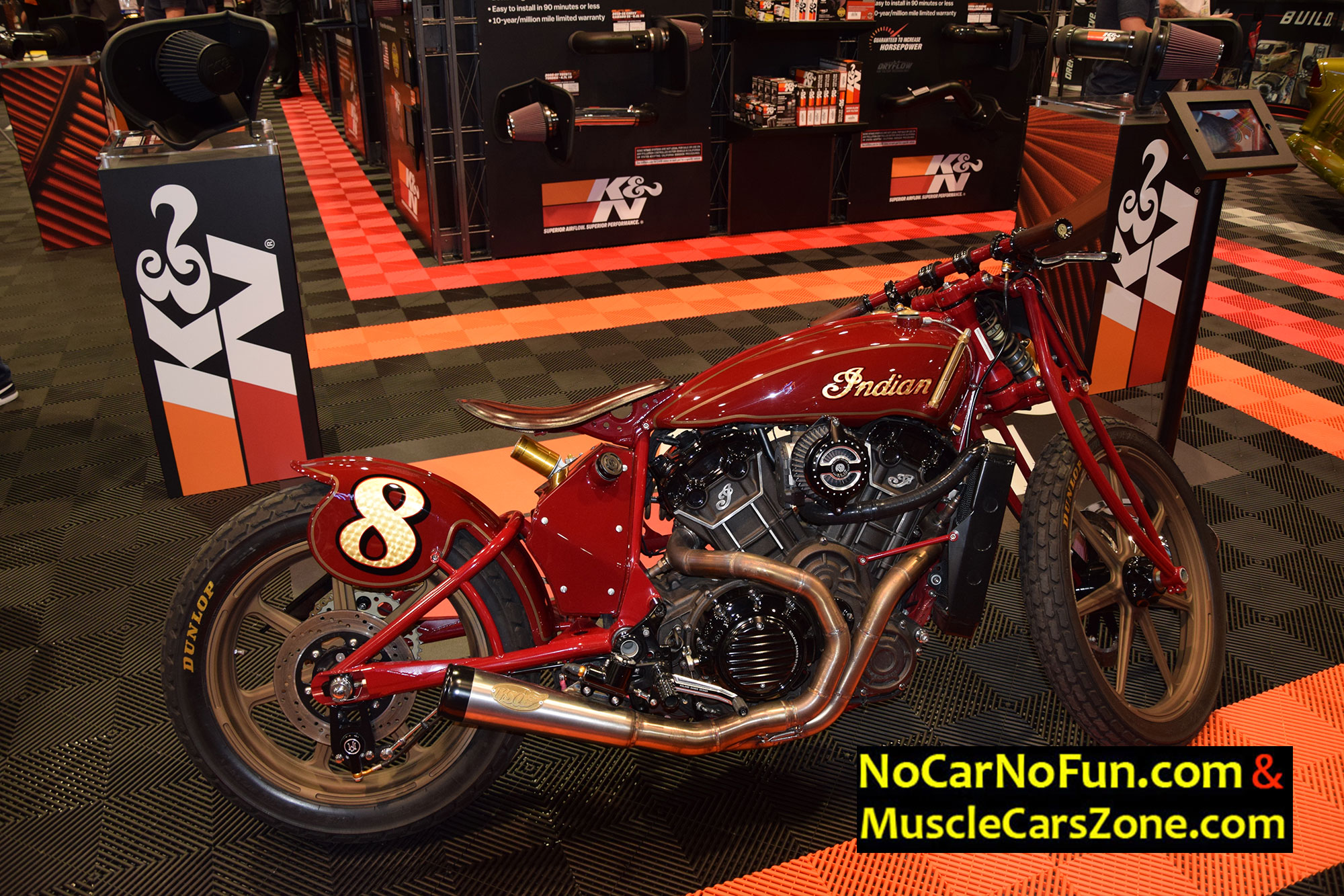 When it comes to bikes, we stumbled upon one very classy creation by America`s first motorcycle company. Yeah, one very sweet Indian Motorcycle that bears the number 8. This Indian is built by renowned bike builders and designers, Roland Sands Design in partnership Indian Motorcycles. This motorcycle totally graced the K&N filters booth at the SEMA Show 2016 Vegas. The vintage red paint job is stunning. The gold accents are also very well implemented into the chain and shock reservoirs. The faux oil bag conceals the computer technology and wiring. This motorcycle really pays a proper homage to the legendary brand.