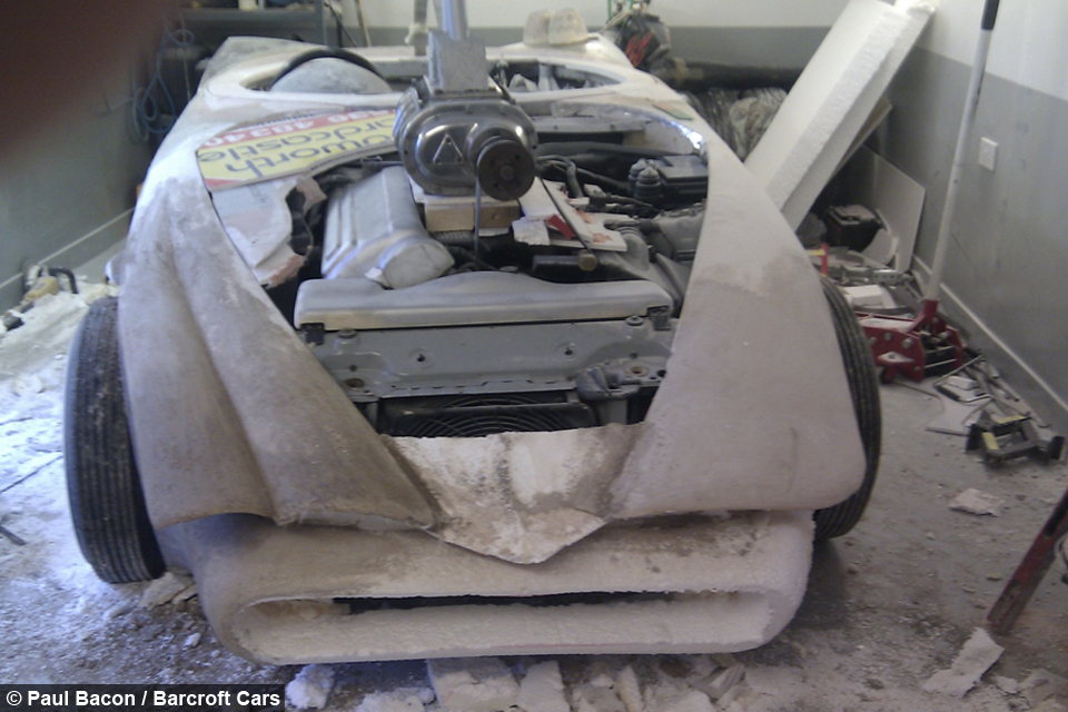 Afterwards he was left with the rolling chassis and the floor plan, so he strengthen that with extra steal just to make sure it was sufficiently rigid so there would be no tilts in the fiberglass body. What is interesting is that for this car, Paul was using only recycling and household materials, such as foam, which helped him to sculpt the shape of the car. Finally, he covered everything in fiberglass and then smoothed it all out to the car the owner has now.