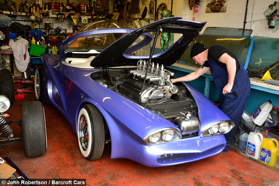 At first glance, it may look like a spaceship from a sci-fi movie, but it is actually an outstanding custom car named The Cosmotron. The space age car was designed by Paul Bacon, who worked a year and a half in his back garden in order for this dream project to become a reality. The owner is Martin Smith, 41 year old man who knew how his dream car should look like and after he draw his imagination he worked out on a solution with Paul.