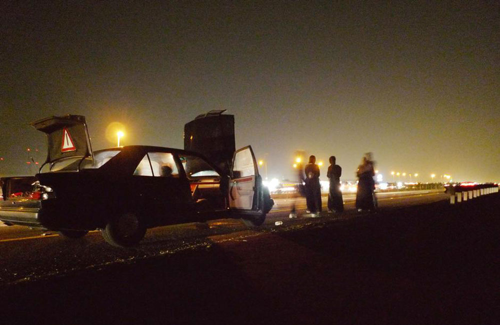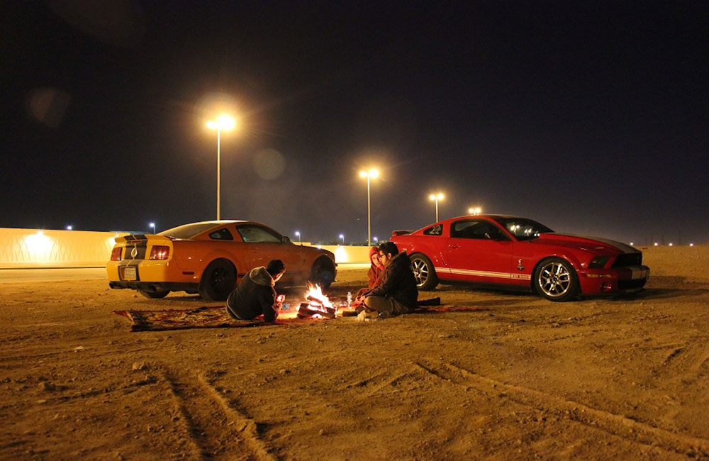 Ahmed and his friends have some kind of a daily schedule of going outside of Riyadh, and try out their attractive vehicles in drag races. In the twilight hours of the day, outside of Riyadh, some people stay, others go away, but the most important thing is that the challengers are arriving. And the case we are describing, they come with a brand new Camaro. These are Ahmed`s rival and challengers. The race is down the highway by the desert for a 1/4 mile and the two muscle cars hit the road. After a few minutes, Mustang is coming back and the Camaro was gone after it lost the race. Afterwards, friends are going into the local tea shop to relax and to tell their stories about this night`s experiences.