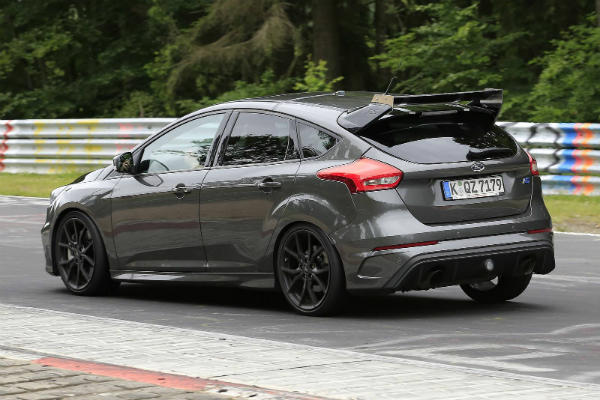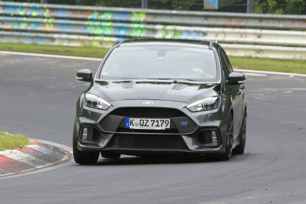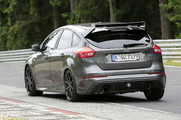 In these pictures, even more potent version of the RS can be seen roaming around! Its exterior upgrades definitely hint at further improved aerodynamic functionality! The air intakes at the front are slightly bigger and this test car features air vents on the hood as well! It is also expected that the Focus RS 500 is going to have more power than the regular RS!