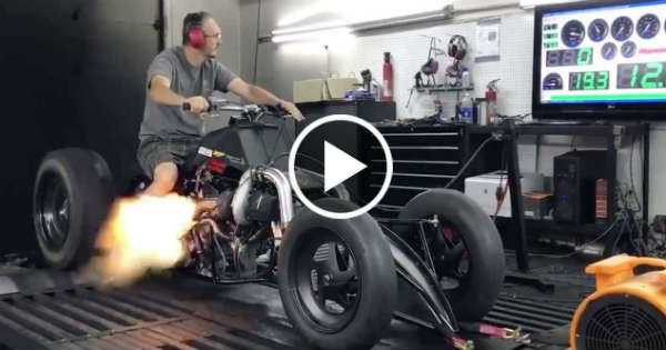 If you want to see some crazy adrenaline rush check out this amazing video with this Hayabusa Powered Quad that screams on Dyno! These guys are testing monsters with tons of power, a lot of grip and of course a lot of adrenaline involved. Actually this is very unique project Turbo Hayabusa Quad attached a drag package and Motec M-130 ECU was built by the guys from English Racing (Lucas English).