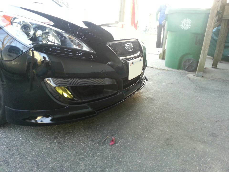 Ryan Thompson: My first purchase for my car was an R2C short ram intake. I would recommend this time and time again. It gives the engine a much meaner tone, a very noticeable pick up off the line, and looks great under the hood. To step up the appearance after that I purchased yellow Lamin-x fog light tints, a full wing rebadge, blacked out my grill, M&S upper and lower eye lines, 3000k Slim Digital HID Fogs, Vis carbon fiber fog light bezels, 25% tint for all windows, medium dark tint for my taillights, and a Prodigy polyurethane lip. The Vis fog bezels work with the yellow HID fogs to send a mean looking light design on the ground. They also flow perfectly with the Prodigy lip. I was impressed by how well fitment on all of it was and to this day I haven`t seen anyone running the same setup. For the interior I picked up a Stage 2 LED Kit from Diode Dynamics. This replaces the map, vanity, trunk, and license plate lights with high output LED`s. Everything is much clearer and it looks much higher class now. After 2 months with the car I had already decided it was already time for a new exhaust and a drop. I don`t want to be “slammed” so I went with Eibach sportlines after a very good recommendation from a friend. The ride sits nice and the drop is noticeable. There was barely any difference in ride quality. For an exhaust kit I contacted ARK and purchased a full ARK GRiP 3.8 exhaust along with an H-pipe to remove my secondary cat. The sound it makes, in addition to the short ram intake, is music to my ears. In total I`ve spent around $3300 including paint and shipping. All labor was done by myself and a couple friends where needed.