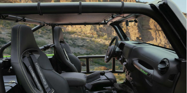 And it`s official! Jeep has released the anticipated Dodge Hellcat engine powered SUV -- the Jeep Trailcat! The concept Jeep is powered by the very same Dodge Hellcat engine, the famous 6.2 L HEMI V8! The same one is currently used for the Challenger and Charger! Thanks to the powerful HEMI, the Jeep Trailcat gives amazing 707 HP! All of the power comes from the six speed manual transmission!