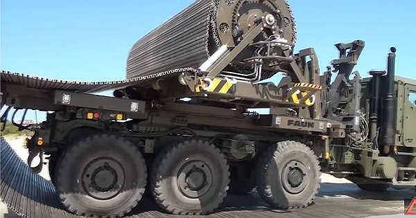 These trackways are most beneficial in a case of disaster situations and emergency where access is crucial in order for supplies and aid to be delivered! These modular, portable roadway systems can be deployed in just merely 10 minutes! Check out these awesome road building machines and tell us your thoughts!