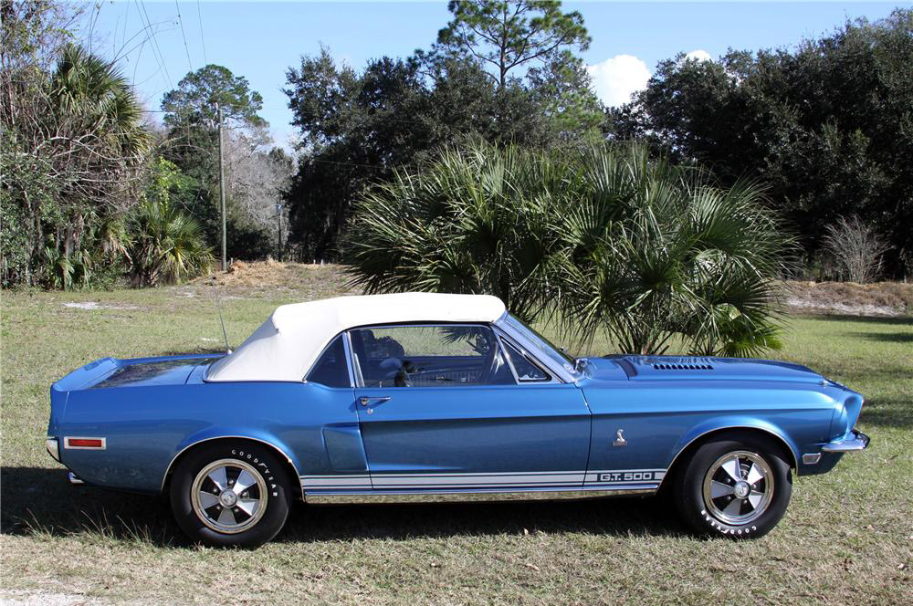 Vehicle description: This 1968 Shelby GT 500 convertible got out of the factory on the 25th of November, 1967 and was one of the 402 units of this model ever built. It featured a 428 cid V8 engine paired with six speed transmission. After some time, the vehicle went a 3 year restoration process that ended in 2009. The point of this restoration process was the Shelby to assume its original form and performance. Therefore it had its engine upgraded and was painted Acapulco Blue. A convertible top was also installed. The vehicle features original AM radio, power steering and one and only Shelby harnesses. On the occasion of the 45th Anniversary of the Mustang Club of America that took place in April, 2009 in Birmingham, AL, the restored Shelby was officially reveled to the public. Between all Shelbies produced in the period from 1965 until 1970 this particular Shelby that we are talking about won the prize. Its whereabouts is in Orland Mustang and a constant care is taken care for the vehicle. On the occasion of the 37th Annual Shelby America Auto Club event, this Shelby won 98.6% and won the “Gold Level” award at the SAAC 36. It actually won this prize 4 times. This Shelby is winner of many other awards among which the “Best in Class” award that this vehicle won 5 times. Also, this Shelby attended a lot of shows and events among which the Grand National Show and the Mustang Club of America National.