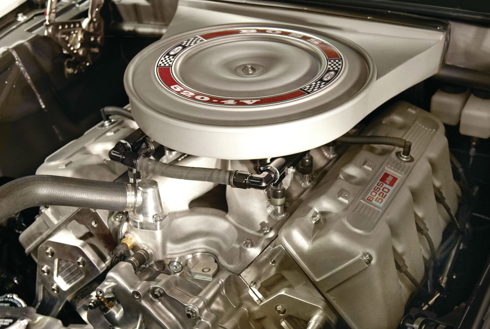It`s a 520ci Boss 9 engine, built by John Kaase from Racing Engines. It has a Tremec TKO-600 five-speed manual transmission. The front and rear suspension is JME inboard cantilever coilover with Maier torque arm.