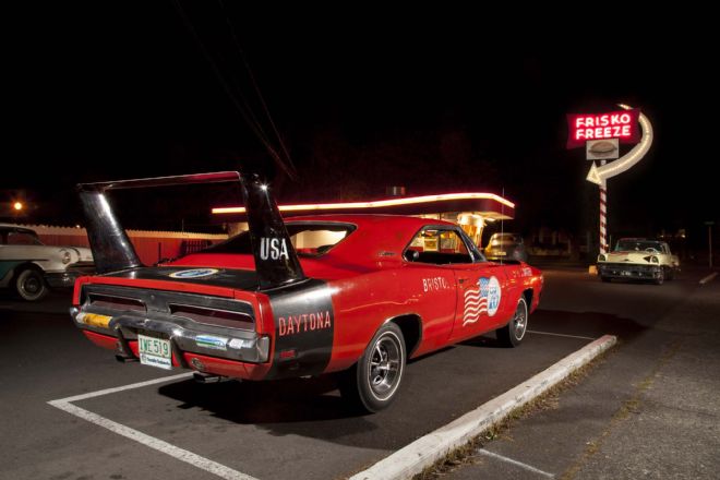 The owner, Ron Smith, tells about the experiences he has had with his beloved car. He explains his trip into Nevada heading towards Las Vegas, where he took advantage of the open road and pressed the pedal to the metal! Smith adds that he went over 150 mph but had to slow down because the Nevada Highway Patrol was coming from the opposite direction! This is just one of the adventures of Mr. Smith and his 1969 Dodge Charger Daytona. There are more, about the life in Florida and California as well as the restoration that happened after many years!