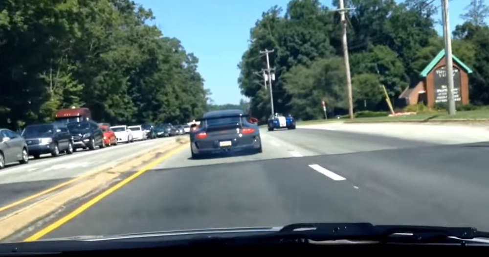 How often does it happen to roll out on the streets on your own or with someone else and you witness a random race at the crossroad? Probably fairly often, even you sometimes take part in such race. But the race in the following video is not your ordinary one. Two absolute beasts go head-to-head, the Porsche GT3 and the almighty classic, the Shelby Cobra. They are seen on the crosswalk waiting for the traffic light to go green and doing revs with their cars.