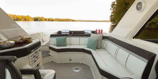 The Sea Ray 310 SLX also has an expandable cockpit area for social matters. Moreover, the lounge can have 17 guests as it provides everything you need to enjoy life! The 4.5L MPI ECT* Bravo III Sterndrives engine providing up to 250 HP makes sure the inside part is covered as well!