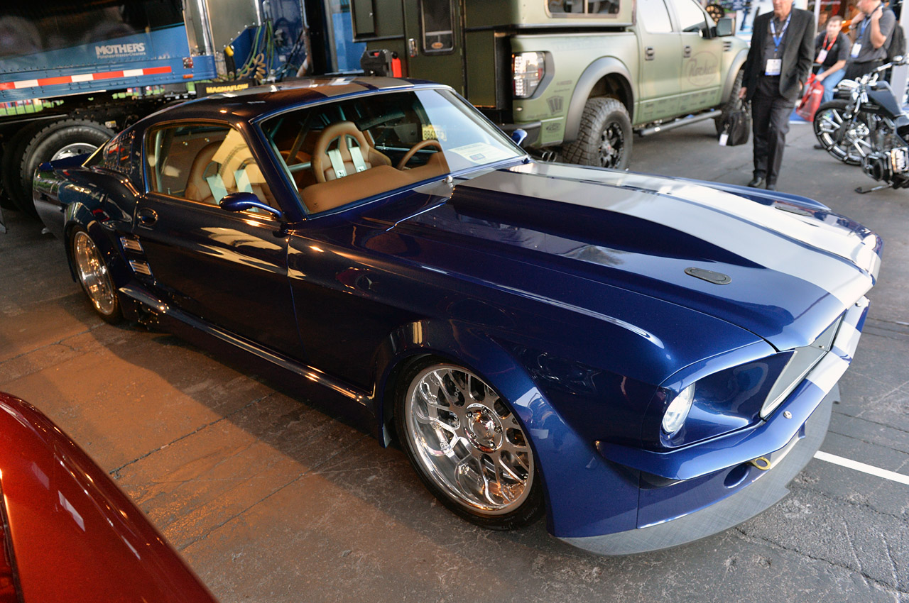 You won`t believe what we almost missed at the SEMA show. This magnificent 1967 Ford Mustang Car Fastback. It was hiding in the Magnaflow tent. As we spotted, this Mustang was subjected to every modification possible.