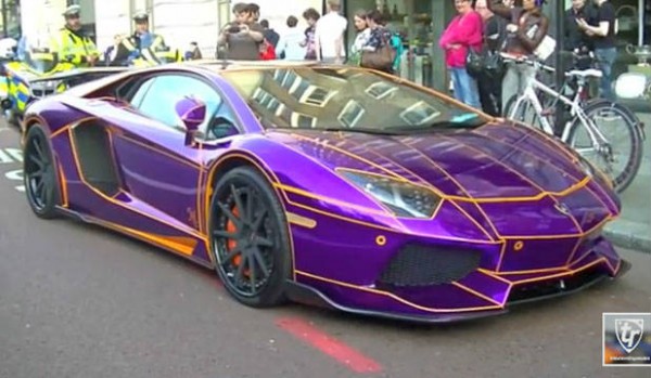 This is one of the flashiest Lamborghini Aventador cars and it was driven by Naseer Al-Thani (24 years) on his vacation in London. He forgot his insurance information and his driver`s license in his homeland Qatar and the meantime he was showing-off with his purple-orange and glow-in-the-dark Lamborghini Aventador. He was seized for driving without driving insurance by the British traffic police and it could get crushed a likely scenario, because mundane vehicles get this when they are seized in Britain.