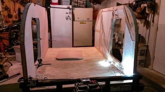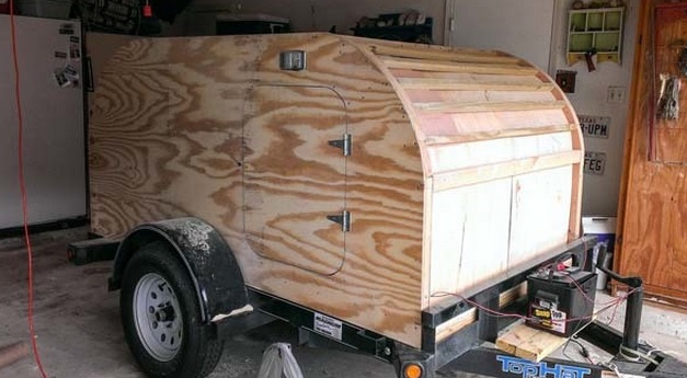 His first step was buying a small trailer and added a floor on the bed in order to install insulation. Next, the frame caused him some minor problems and decided to begin by placing wood around the walls. Curved pieces were added to the frame and built door frames. Next, he installed the electrical wiring, added another layer of insulation and made the roof on which he cut a hole that later will serve as a vent fan. The next step was more insulation and probably the most difficult task – adding the curved plywood. But this is not where he stopped.He then placed a bed inside the trailer and a kitchen in the back. Finally, an aluminium was added to the siding.